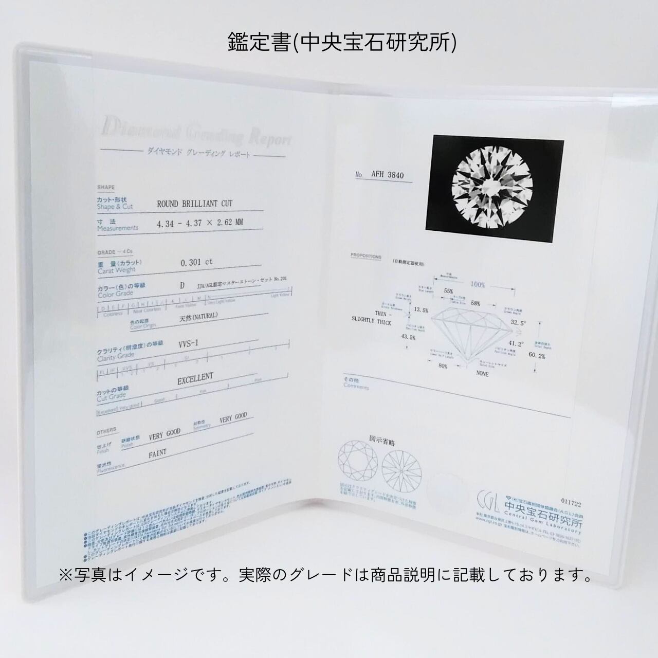 鑑定書:中央宝石研究所鑑定書付