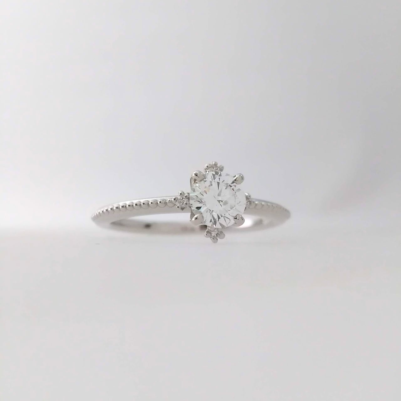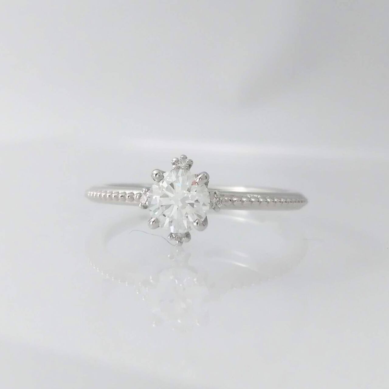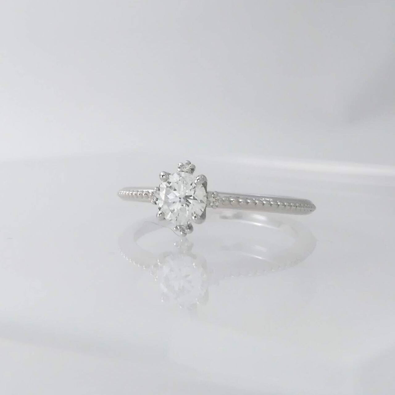 繊細なミル打ちが輝きを添える、正統派ダイヤモンドリング