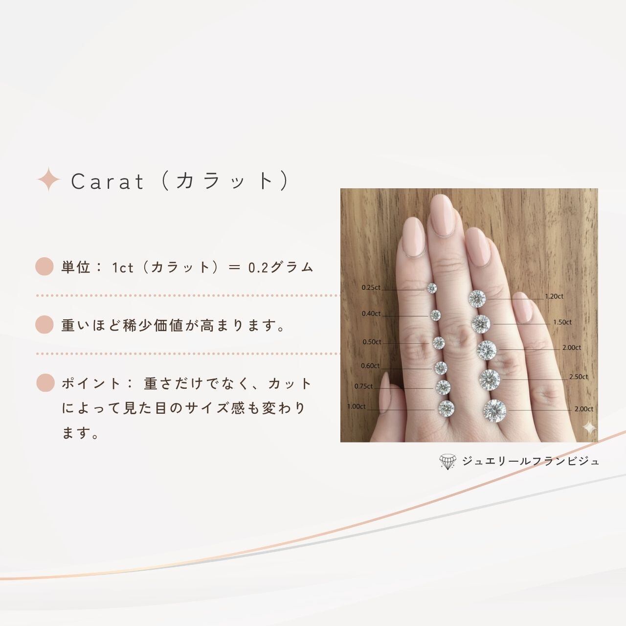 婚約指輪のダイヤモンドは、一般的には0.2ct~0.3ctが中心