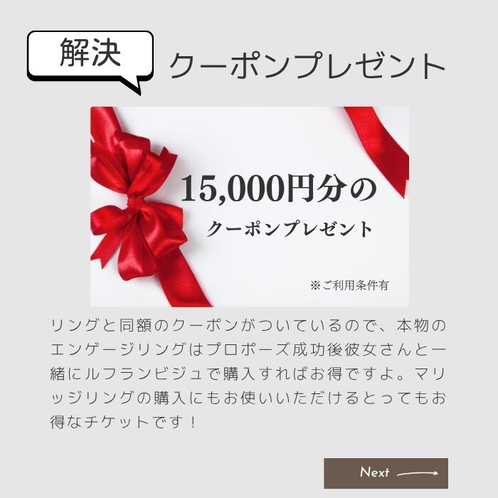 プロポーズリングを贈り、後日おふたりで本物のエンゲージリングを買いに行きたい方や