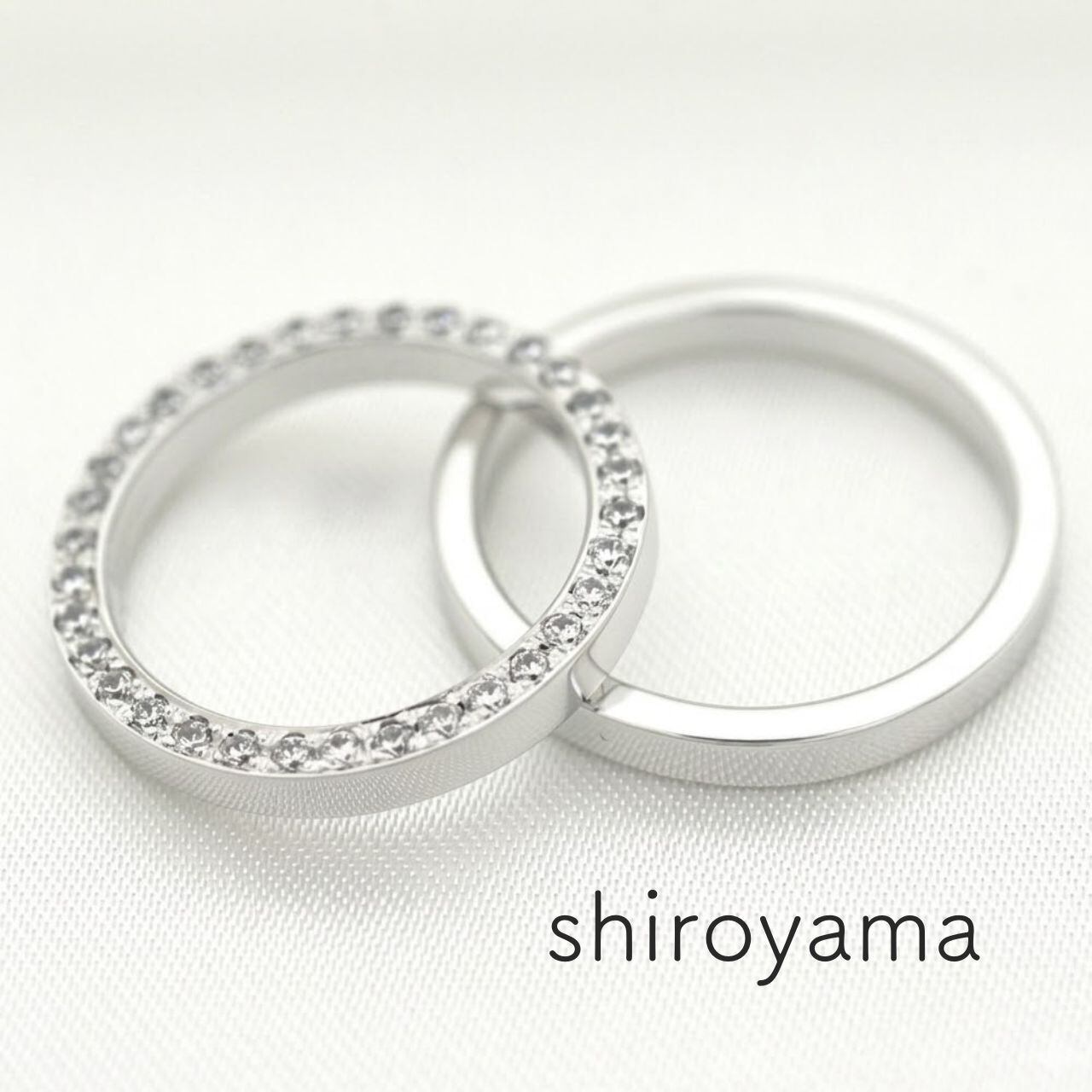 shiroyamaはシンプルで厚みのある重厚なリングです。レディースデザインには片方の側面にびっしりとダイヤモンドが埋め込まれたラグジュアリーなデザインで、さり気なく高級感が漂う豪華なリングです。