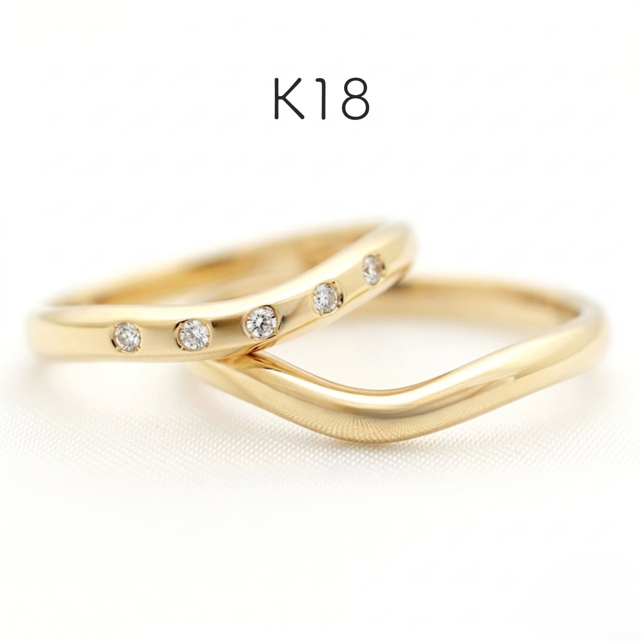 yugawaraは緩やかなラインが特徴のシンプルなリングです。レディースデザインには可愛らしく5石のダイヤモンドをリズミカルにお入れしました。指もとでさりげなくきらめくダイヤモンドが華やかさを添えます。